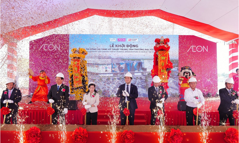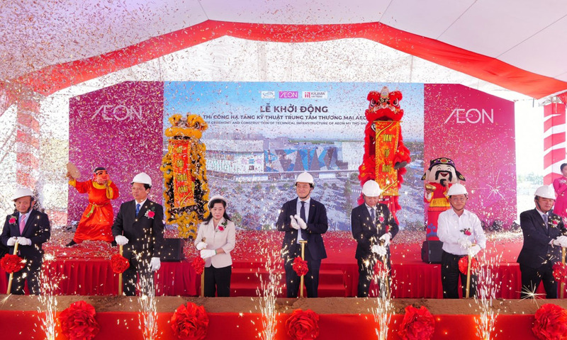 Lãnh đạo tỉnh Đồng Tháp cùng đại diện AEON Việt Nam thực hiện nghi thức khởi động Dự án Trung tâm thương mại AEON Mỹ Tho.