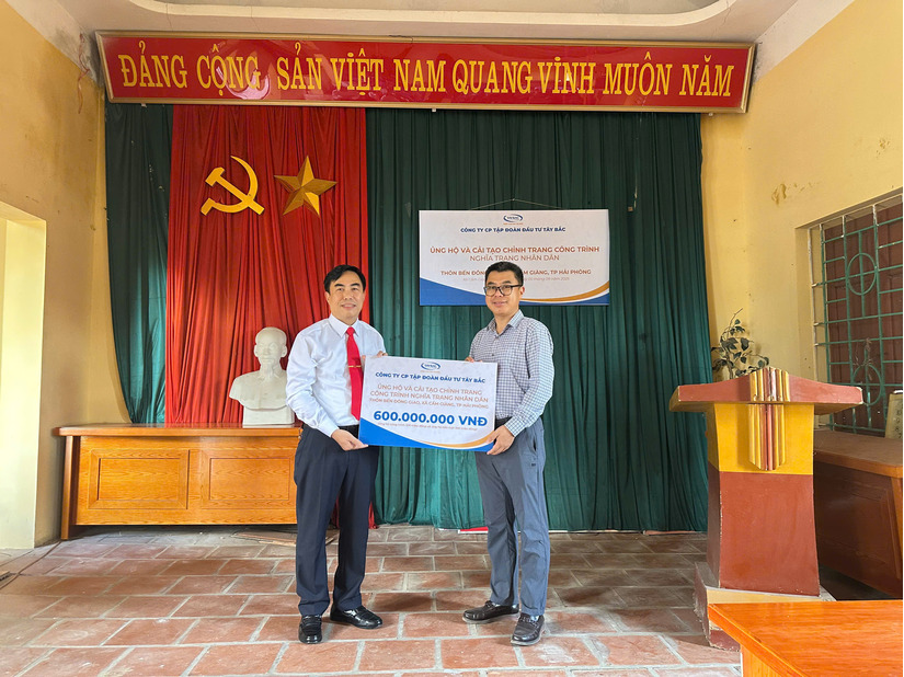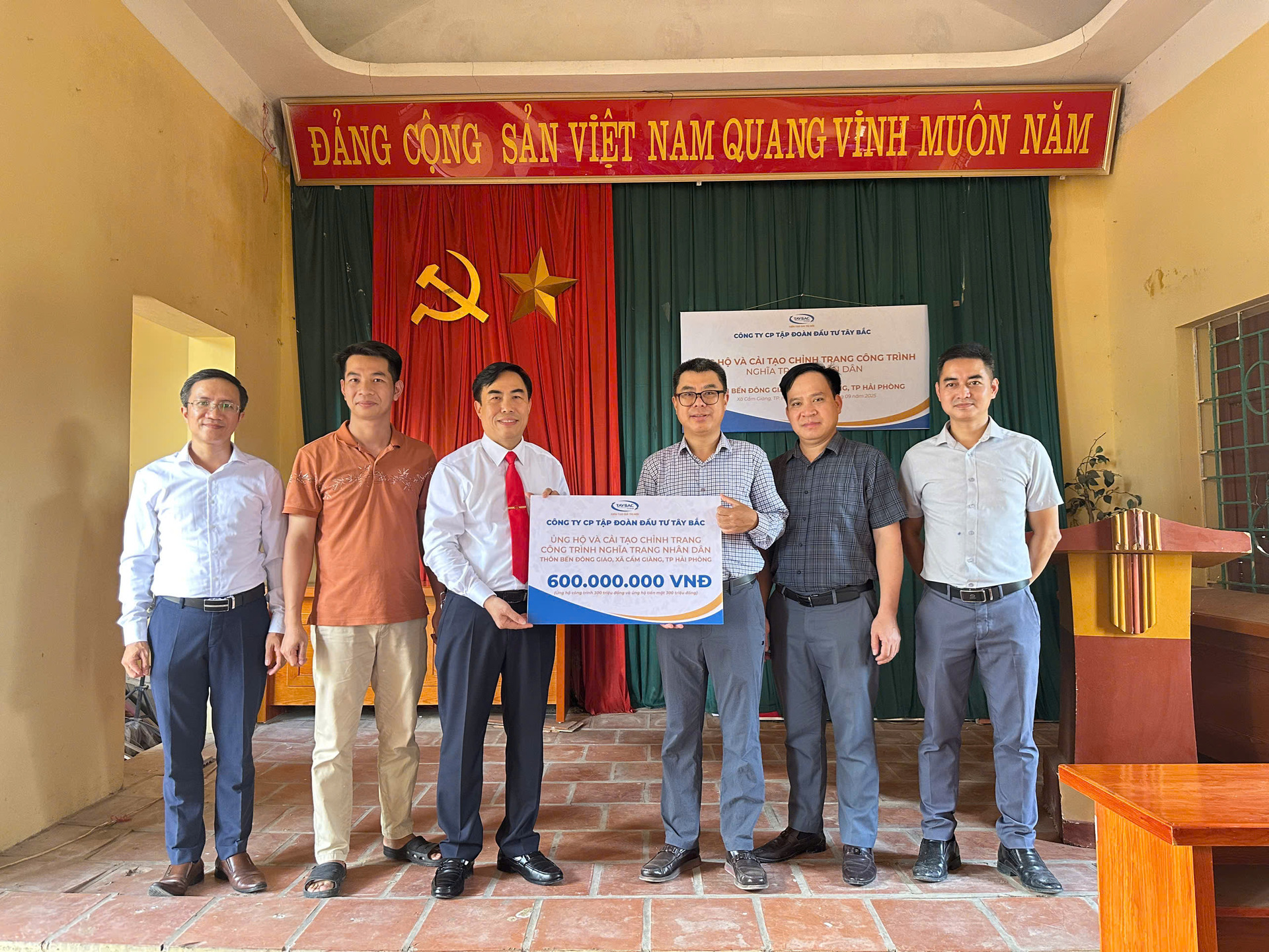 Ngày 5/9/2025, tại Nhà Văn hóa thôn Bến Đông Giao, Tập đoàn Tây Bắc đã thực hiện trao tặng Ủng hộ và cải tạo chỉnh trang công trình nghĩa trang nhân dân thôn Bến Đông Giao, Xã Cẩm Giàng, TP Hải Phòng với tổng giá trị 600 triệu đồng, trong đó có 300 triệu đồng ủng hộ công trình và 300 triệu đồng ủng hộ tiền mặt.